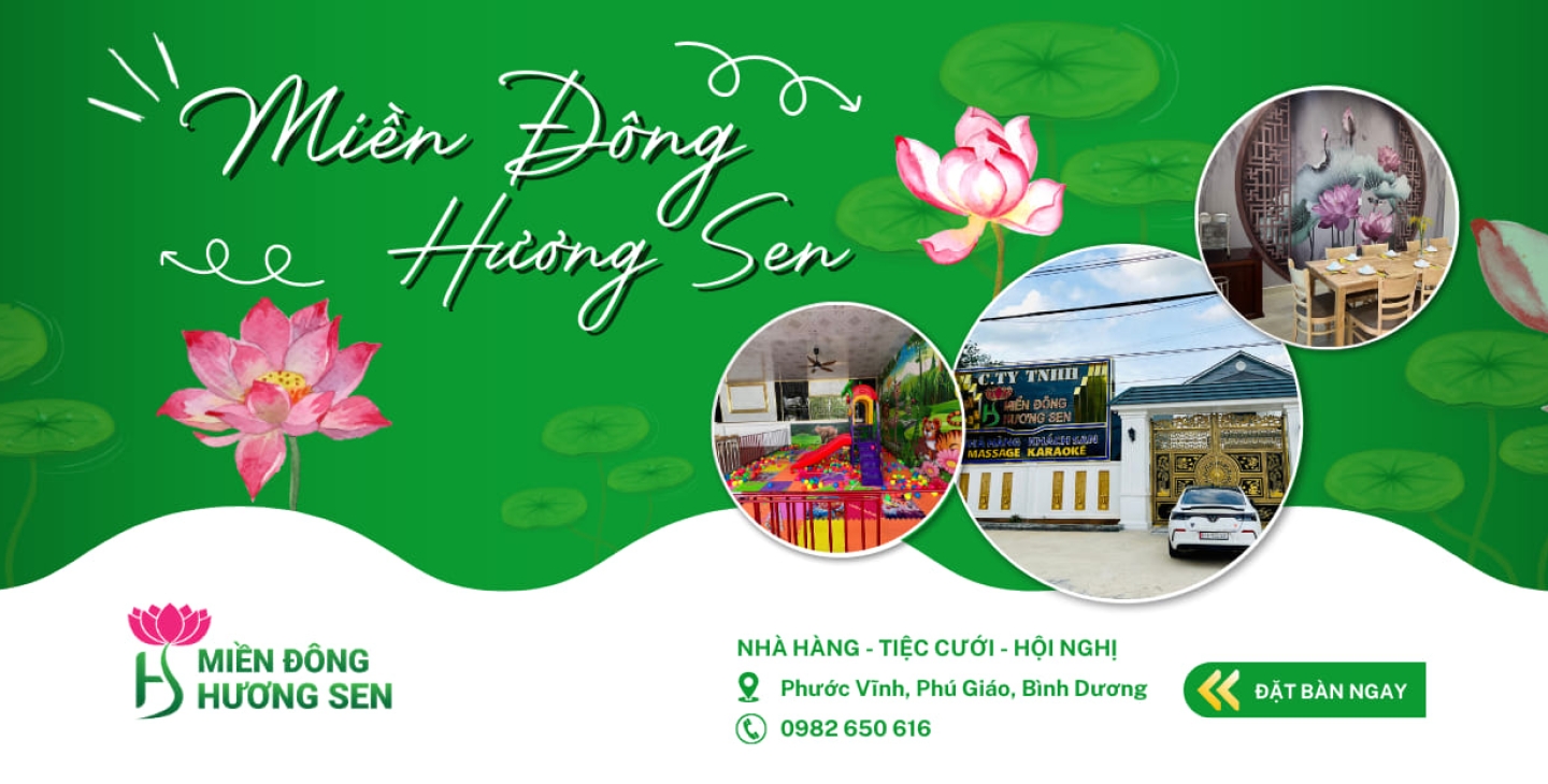 Miền Đông Hương Sen tự hào là một trong những địa điểm hàng đầu tại huyện Phú Giáo, tỉnh Bình Dương, chuyên cung cấp dịch vụ nhà hàng – khách sạn, karaoke, massage và tổ chức tiệc cưới. Với hơn 20 năm kinh nghiệm, chúng tôi không ngừng phát triển để mang đến cho quý khách không gian sang trọng, chất lượng dịch vụ tốt nhất cùng những trải nghiệm đáng nhớ.